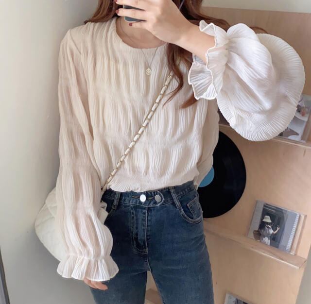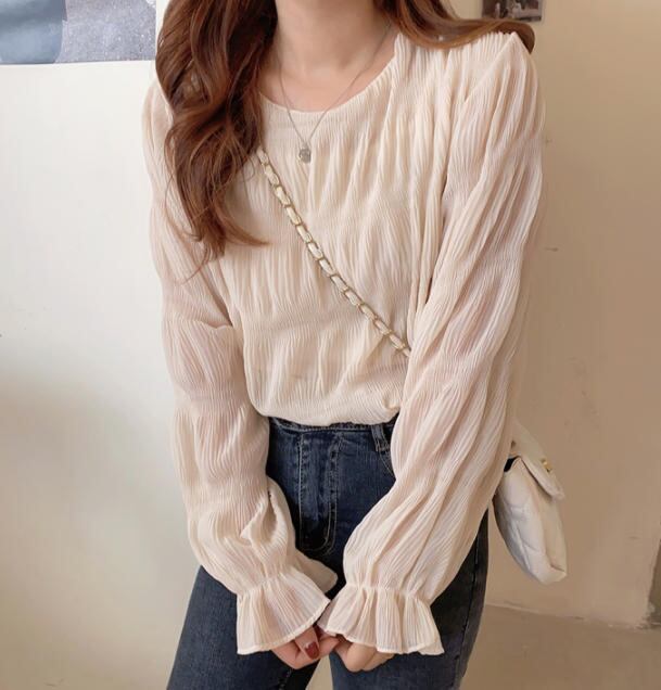 【送料無料】ブラウス きれいめ 長袖 トップス シフォン 透け感 ゆったり 上品 大人 30代 40代 ベージュ ホワイト ブラック ピンク TP-025B