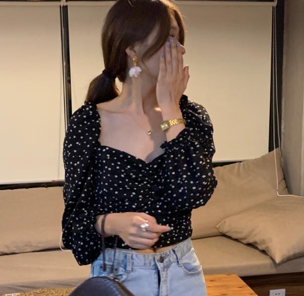 【送料無料】ブラウス きれいめ 長袖 トップス 花柄 フェミニン 上品 大人 レトロ 30代 40代 50代 ブラック TP-027B