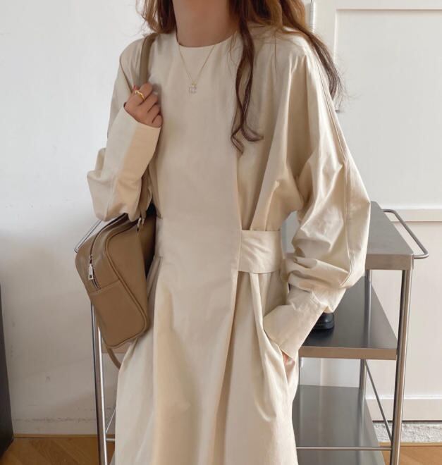 【送料無料】ワンピース きれいめ 長袖 ハイウエスト フレア 大人 上品 シンプル カジュアル おしゃれ 30代 40代 ベージュ ブラウン ブラック OP-107B