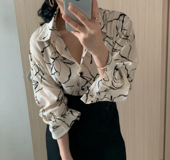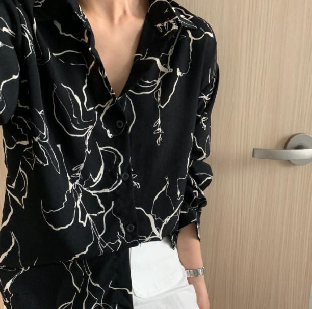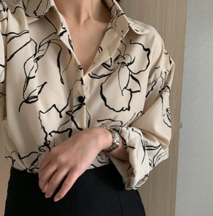 【送料無料】ブラウス きれいめ 長袖 トップス 花柄 大人 上品 カジュアル レトロ おしゃれ 30代 40代 ベージュ ブラック TP-031B