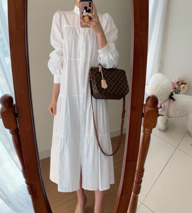 【送料無料】ワンピース きれいめ 長袖 フレア ゆったり 無地 カジュアル シンプル 大人 上品 30代 40代 ブラック ホワイト OP-109B
