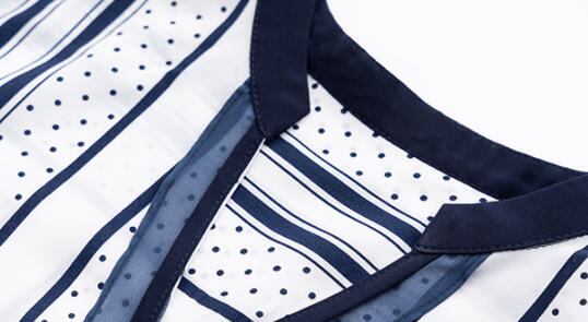 【送料無料】ブラウス 長袖 トップス Vネック 大きいサイズ ストライプ ドット柄 大人 上品 エレガント 30代 40代 ホワイト ネイビー TP-036B