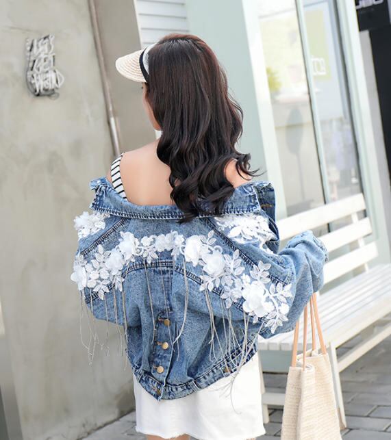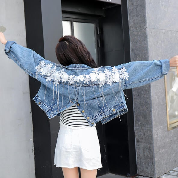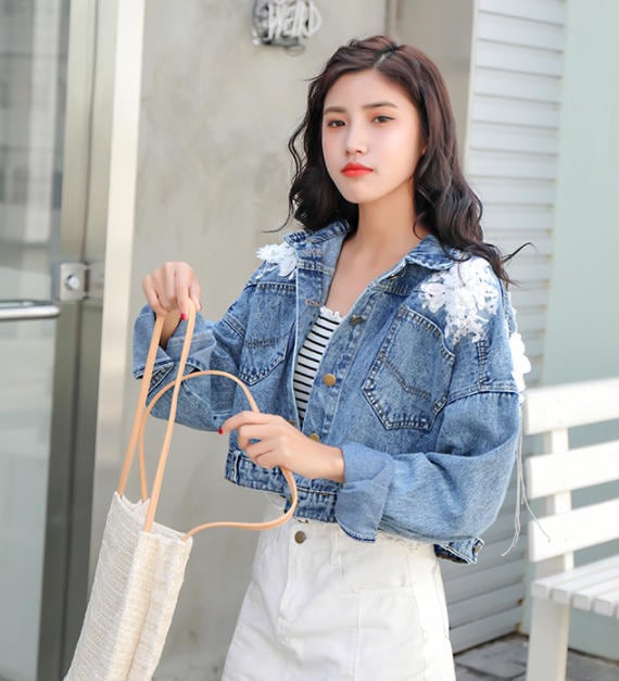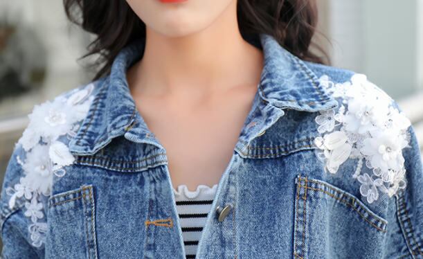 【送料無料】デニムジャケット アウター 花柄 レース ショート丈 スリット 大人 上品 きれいめ 30代 40代 ブルー OU-017R