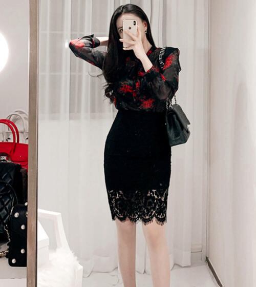 【送料無料】ブラウス オフィス フォーマル トップス 花柄 ボウタイ リボン シースルー 大人 上品 シンプル 30代 40代 ブラック TP-045R