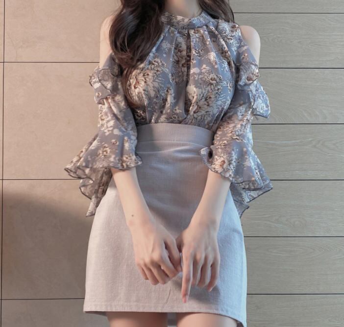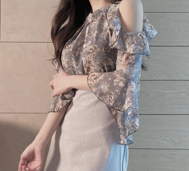 オープンショルダーのセクシーな花柄ブラウス♪