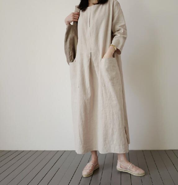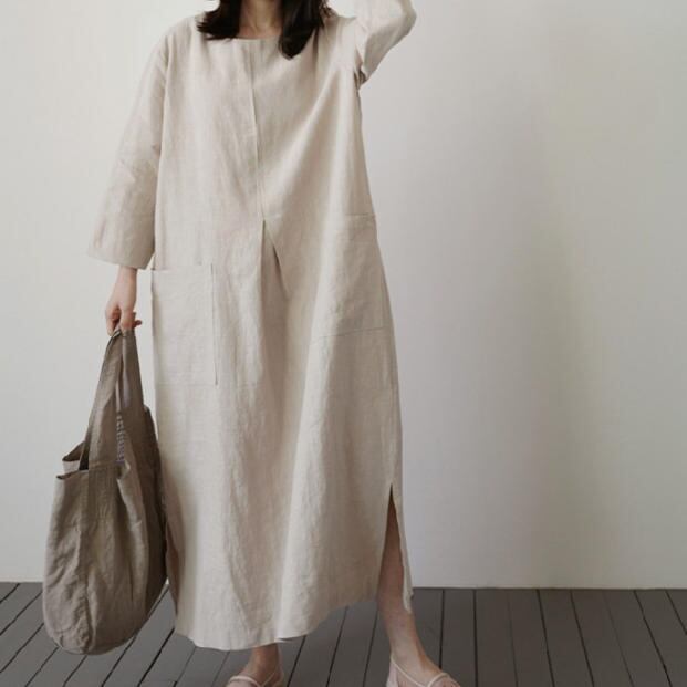 ゆるシルエットの可愛らしいリネンワンピース♪