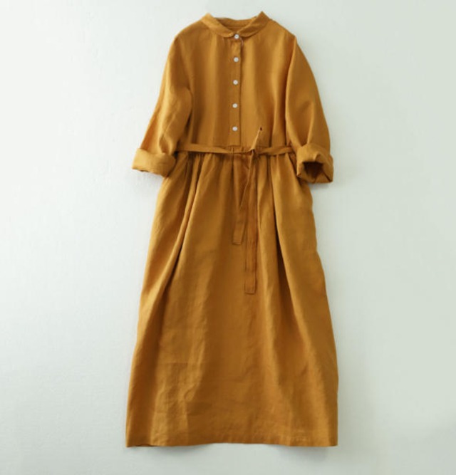 【送料無料】リネンワンピース 春 きれいめ ロング ハイウエスト フレア ゆったり カジュアル 大人 上品 シンプル ベーシック 30代 40代 ブルー ベージュ イエロー OP-135R
