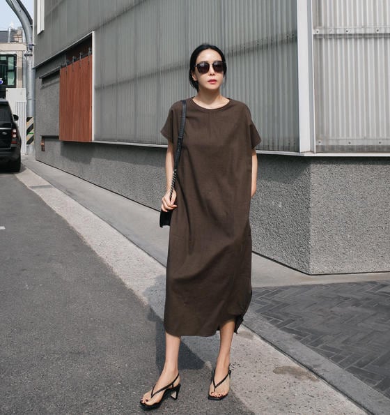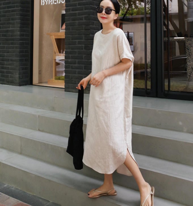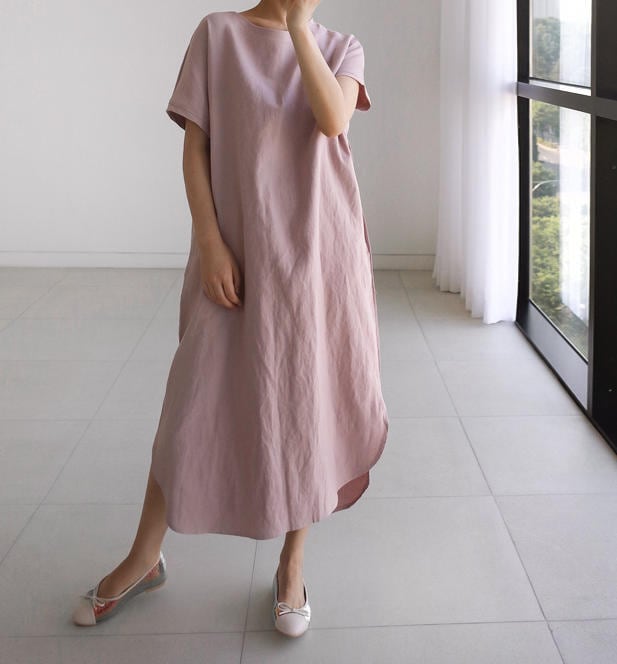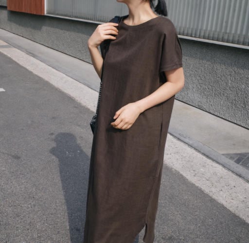 【送料無料】リネンワンピース 春 きれいめ ロング Tシャツワンピース 半袖 ゆったり 無地 カジュアル 大人 上品 シンプル ベーシック 30代 40代 ピンク ブラウン ベージュ OP-138R