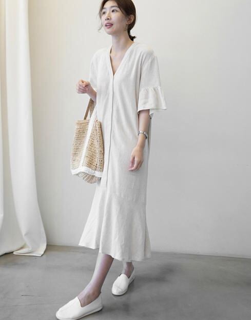 【送料無料】リネンワンピース 春 きれいめ ロング 長袖 大きいサイズ フレア ゆったり カジュアル 大人 上品 シンプル ベーシック 30代 40代 ベージュ ブラック OP-144R