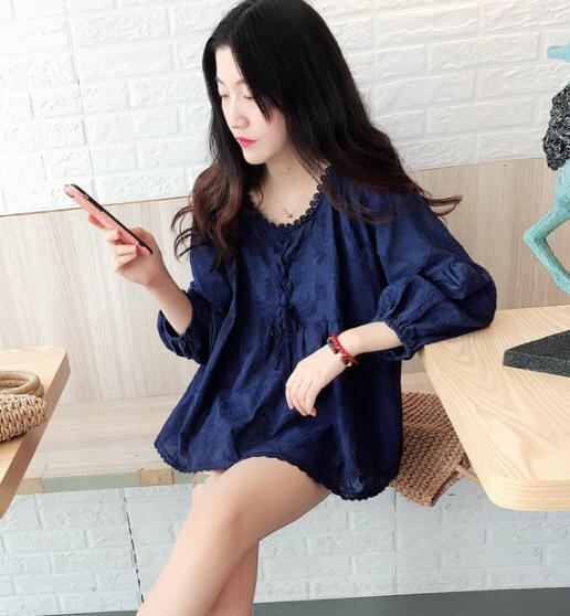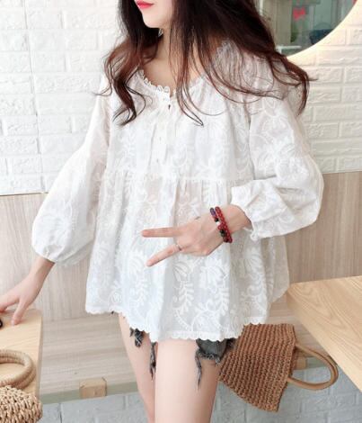 【送料無料】シャツ ブラウス トップス きれいめ 長袖 春 レース バルーンスリーブ ゆったり カジュアル 大人 可愛い おしゃれ 30代 40代 ホワイト ブルー TP-052R