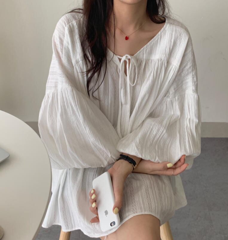 【送料無料】シャツ ブラウス トップス きれいめ 長袖 春 透け感 シースルー バルーンスリーブ カジュアル 大人 可愛い おしゃれ 30代 40代 ホワイト TP-062R