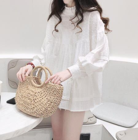 小さめのぽんぽんが可愛らしいブラウスです♪