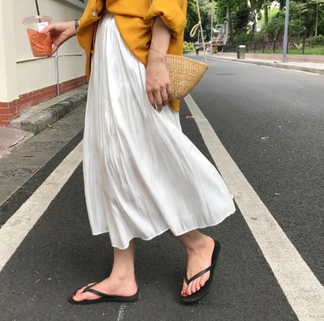 【送料無料】プリーツスカート ロング きれいめ 春 フレア ハイウエスト 光沢 カジュアル 上品 大人 シンプル 30代 40代 ベージュ ホワイト SK-012R