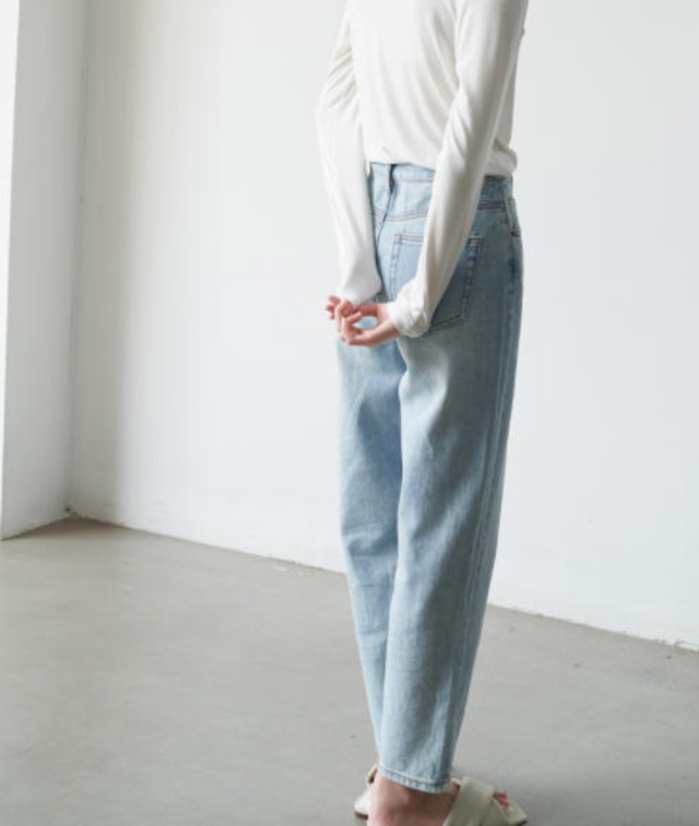 【送料無料】デニムパンツ テーパードデニム 大きいサイズ ロング ハイウエスト カジュアル シンプル 大人 ベーシック 30代 40代 ブルー PT-012R