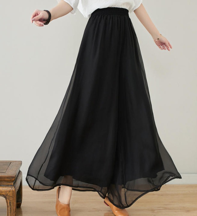 【送料無料】フレアパンツ ハイウエスト 大きいサイズ ウエストゴム 透け感 ゆったり 体型カバー カジュアル シンプル 大人 ベーシック 30代 40代 ホワイト ブラック ピンク PT-023R