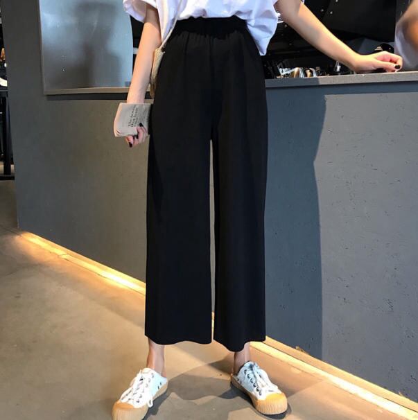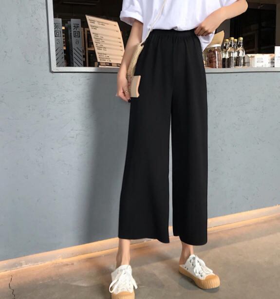 【送料無料】ワイドパンツ きれいめ 春 ウエストゴム ハイウエスト ゆったり 体型カバー 大人 無地 上品 シンプル ベーシック カジュアル 大人 30代 40代ブラック PT-032R
