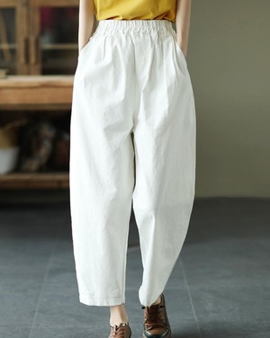 【送料無料】ロングパンツ 丸みパンツ きれいめ 春 ハイウエスト 無地 体型カバー 無地 上品 シンプル ベーシック カジュアル 大人 30代 40代 イエロー ホワイト ブルー オレンジ ブラック PT-054R
