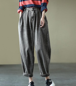 【送料無料】サーカスパンツ バルーンパンツ デニム ロング デニムパンツ 大きいサイズ コクーンパンツ バルーン デニム 大人 シンプル カジュアル ベーシック 30代 40代 50代 ブルー グレー PT-072R