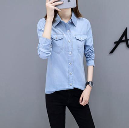 【送料無料】デニムシャツ トップス 大きいサイズ 体型カバー カジュアル シンプル 大人 ベーシック 30代 40代 50代 ブルー TP-067R