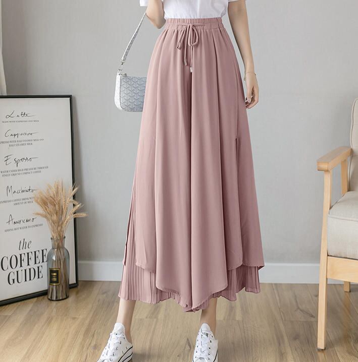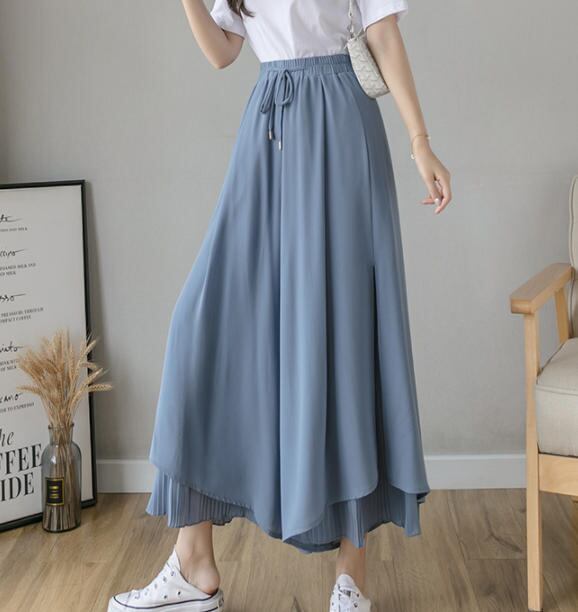【送料無料】スカーチョ ワイドパンツ ハイウエスト シフォン 無地 シンプル きれいめ 大人 上品 30代 40代 ブルー ピンク ホワイト ブラック PT-077R