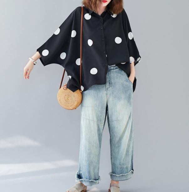 【送料無料】シャツ ブラウス トップス 長袖 ドット柄 ゆったり 無地 シンプル ベーシック カジュアル 大人 30代 40代 ベージュ ブラック TP-073R