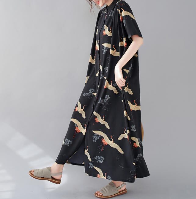 【送料無料】ワンピース きれいめ 半袖 ロング ゆったり 体型カバー カジュアル 大人 上品 レトロ 30代 40代 ブラック OP-154R