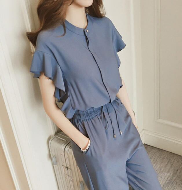 袖のフリルデザインが可愛いポイントのセットアップです♪