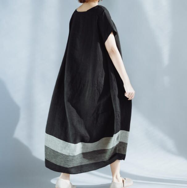 【送料無料】ワンピース 春 きれいめ 半袖 夏 ロング 大きいサイズ ゆったり 体型カバー 無地 30代 40代 50代 ブラック OP-172R