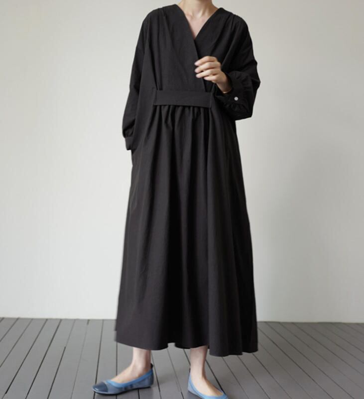 【送料無料】ワンピース 春 きれいめ 半袖 夏 ロング Vネック 大きいサイズ ゆったり 体型カバー 無地 30代 40代 50代 ベージュ ブラック OP-173R