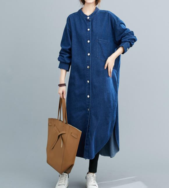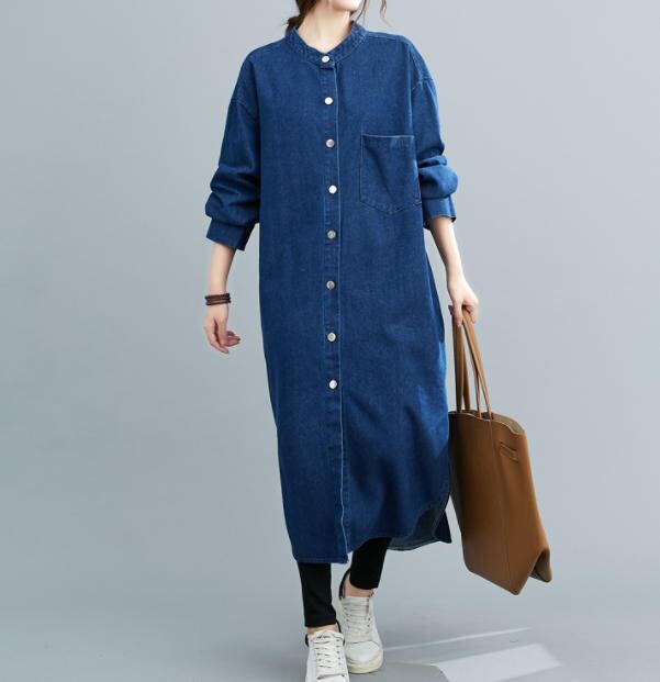 【送料無料】ワンピース 春 きれいめ 半袖 夏 ロング デニム シャツワンピース 大きいサイズ ゆったり 体型カバー 無地 30代 40代 50代 ブルー OP-174R