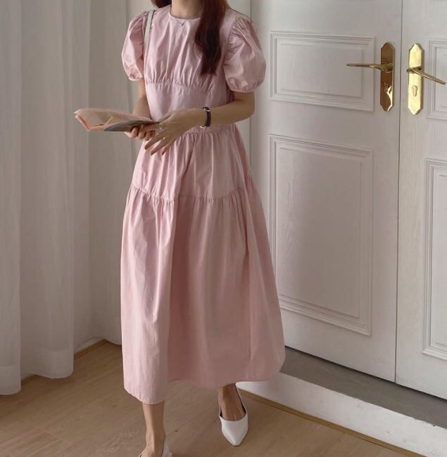 【送料無料】ワンピース 春 きれいめ 半袖 夏 ロング パフスリーブ フレア 大人 上品 30代 ピンク ホワイト ブルー ブラック OP-178R