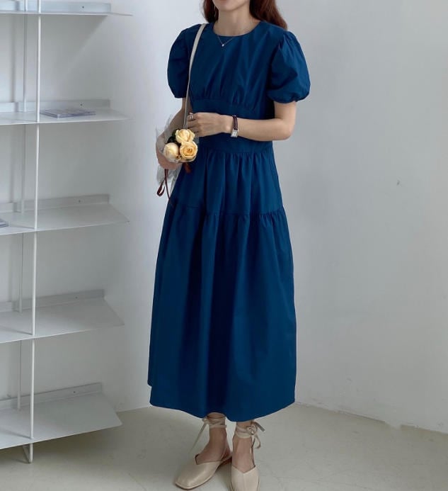 パフスリーブが可愛らしいロングワンピースです♪
