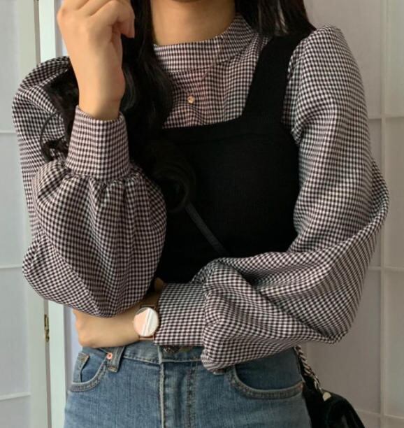 【送料無料】ブラウス トップス ビスチェ 2点セット ボリューム袖 カジュアル レトロ 可愛い おしゃれ 20代 30代 ブラック TP-097R