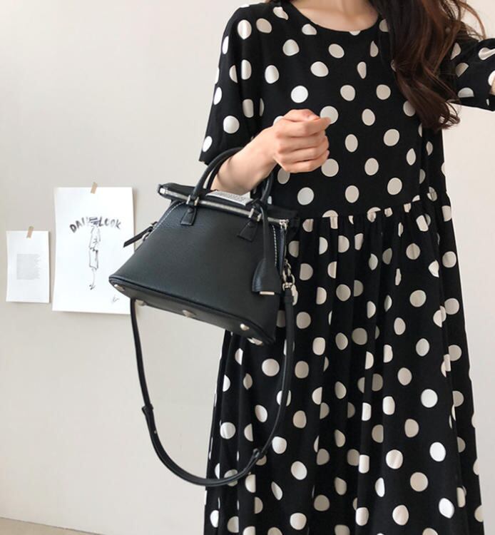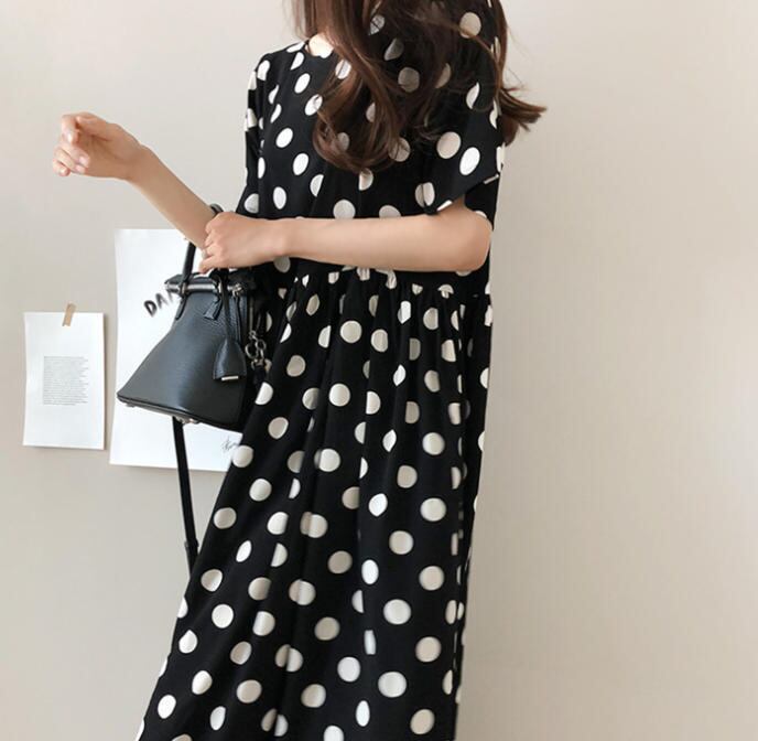 【送料無料】ワンピース 夏 きれいめ 半袖 ドット柄 ロング フレア カジュアル レトロ 大人 可愛い おしゃれ 30代 40代 ブラック OP-189R