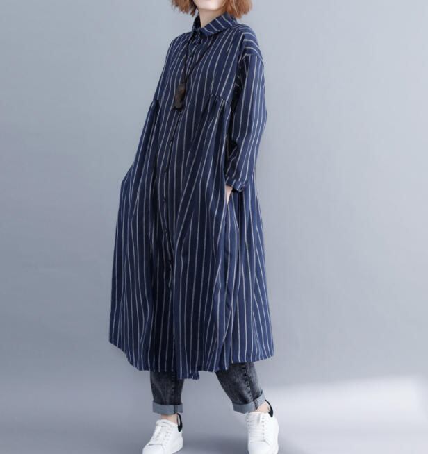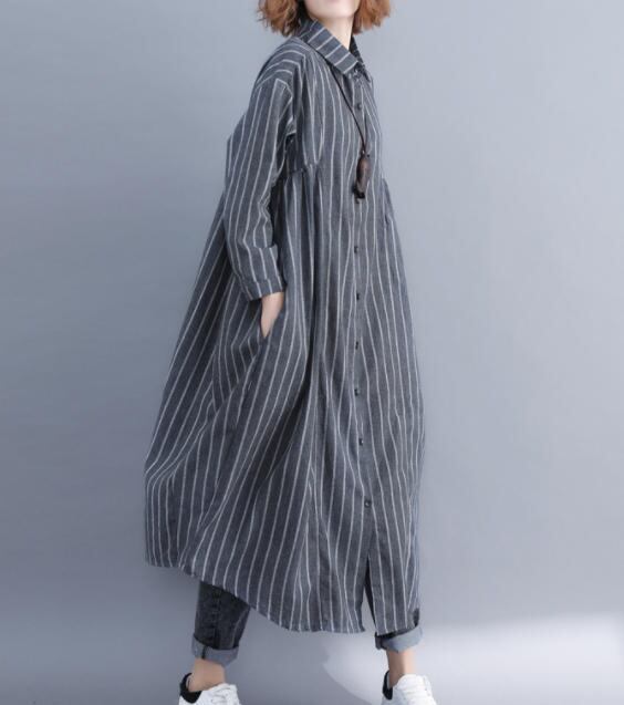 【送料無料】シャツワンピース ロング ストライプ ゆったり シンプル カジュアル 大人 体型カバー 30代 40代 ブラック ネイビー グレー OP-190R