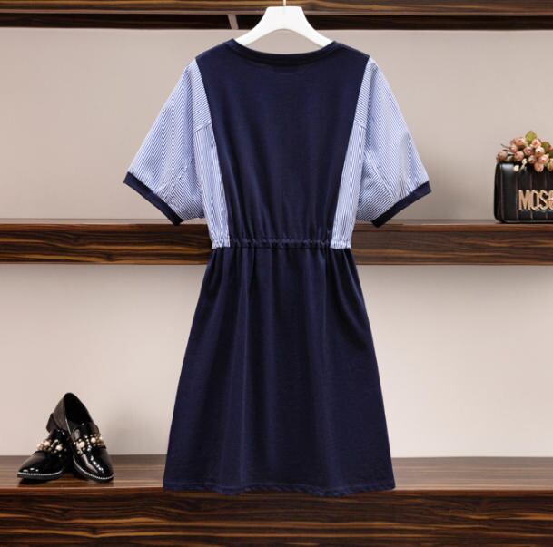 【送料無料】ワンピース 夏 きれいめ 半袖 膝丈 大きいサイズ ストライプ ゆったり 体型カバー シンプル 大人 可愛い 20代 30代 ブラック OP-203R