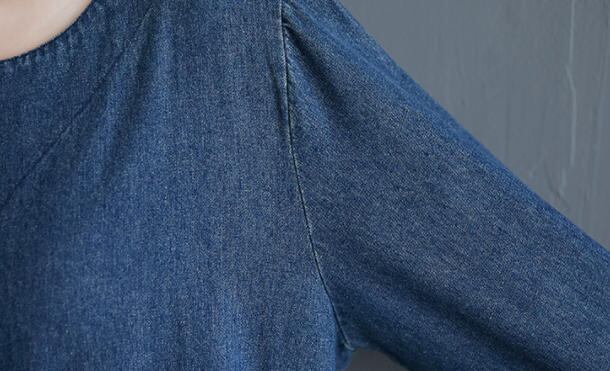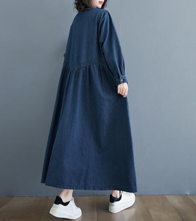 【送料無料】ワンピース 夏 きれいめ ロング 大きいサイズ フレア 長袖 ゆったり 無地 シンプル カジュアル 30代 40代 ブルー OP-204R