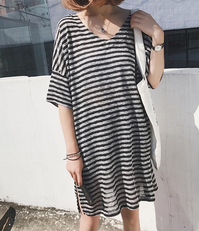 【送料無料】ワンピース 夏 半袖 Tシャツ 大きいサイズ ボーダー ゆったり 体型カバー 大人 シンプル カジュアル 30代 40代 ブラック OP-207R