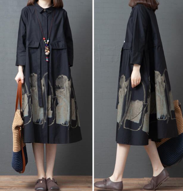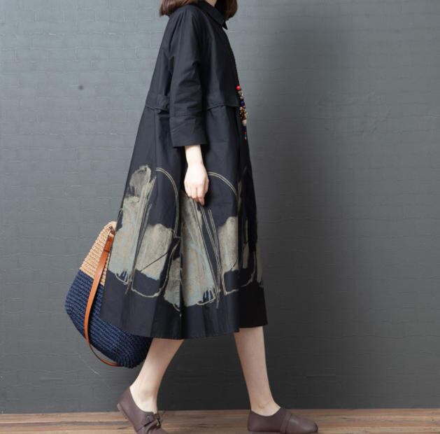 【送料無料】ワンピース 夏 大きいサイズ フレア ゆったり カジュアル 大人 おしゃれ レトロ 30代 40代 ブラック OP-212R