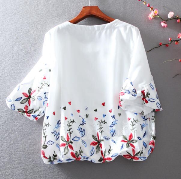 鮮やかなお花の刺繍が可愛らしいブラウスです♪