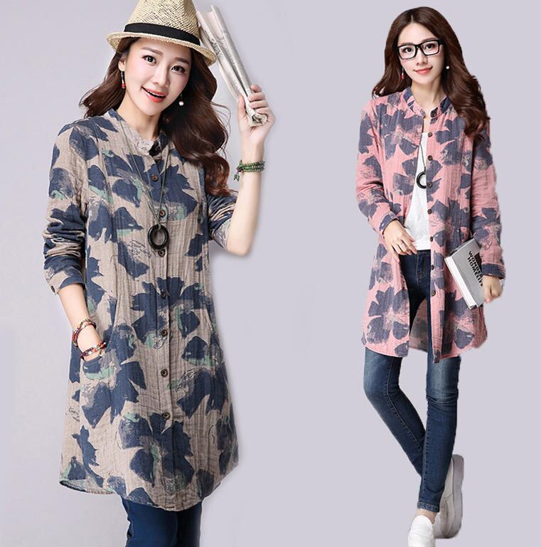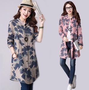 【送料無料】ブラウス トップス 花柄 大きいサイズ ノーカラー ゆったり カジュアル おしゃれ レトロ 大人 30代 40代 ブルー ピンク TP-141R
