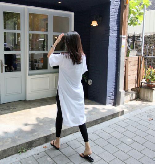 【送料無料】ワンピース 夏 大きいサイズ スリット ライン カジュアル シンプル 大人 スポーティー 30代 40代 ホワイト OP-216R