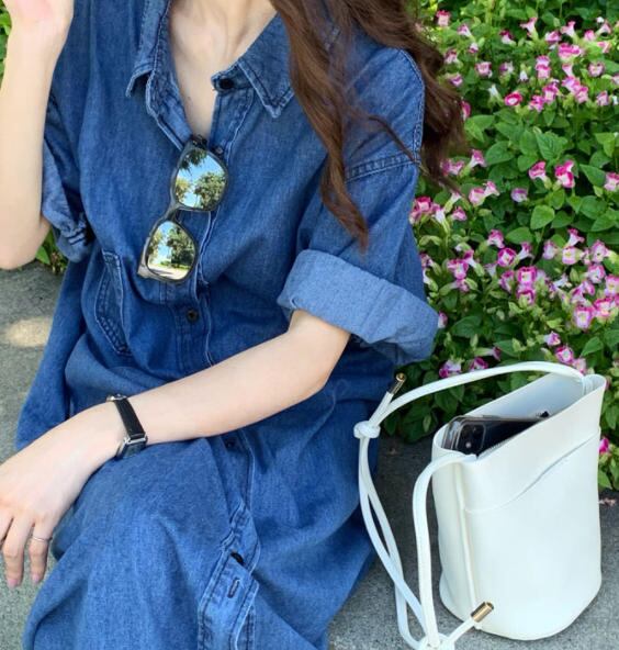 【送料無料】ワンピース 夏 大きいサイズ デニムワンピース ロング 長袖 ゆったり カジュアル シンプル 大人 30代 40代 ブルー OP-217R
