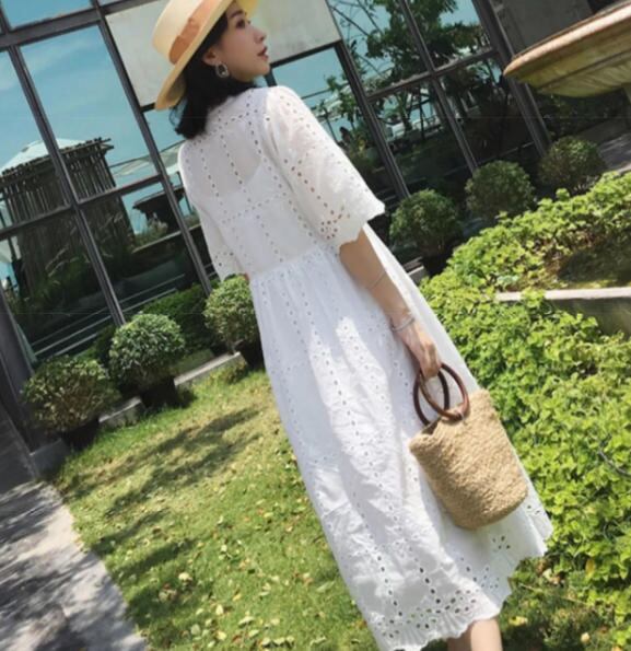 【送料無料】ワンピース 夏 ロング 大きいサイズ パンチングレース ゆったり 大人 ナチュラル おしゃれ きれいめ 30代 40代 ホワイト OP-218R