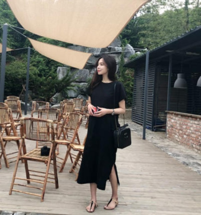 【送料無料】ワンピース 半袖 夏 ロング Tシャツワンピース ゆったり 無地 カジュアル 大人 シンプル ベーシック 30代 40代 ブラック OP-224