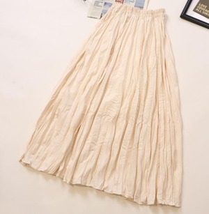 【送料無料】フレアスカート ロング ハイウエスト しわ加工 無地 Aライン きれいめ 大人 シンプル ベーシック 30代 40代 ホワイト ベージュ ブラック SK-037