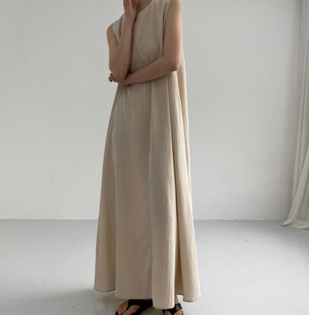 【送料無料】ワンピース 夏 ロング ノースリーブ ルーズ ゆったり カジュアル シンプル 大人 30代 40代 ブルー ベージュ グレー OP-229