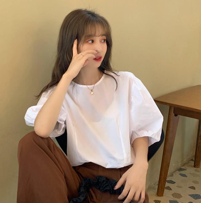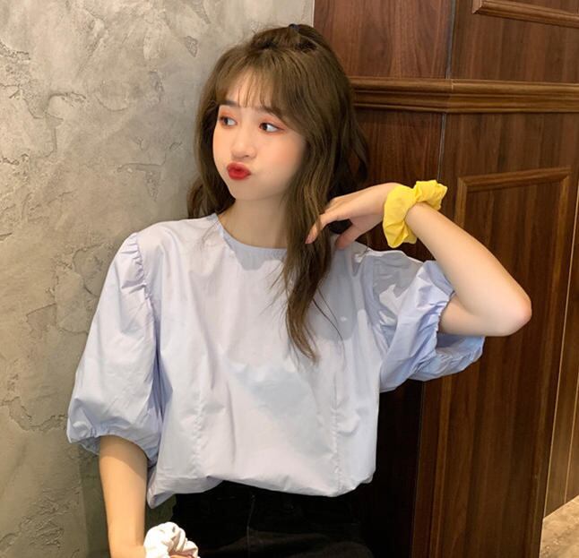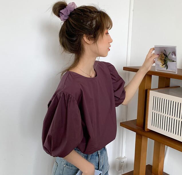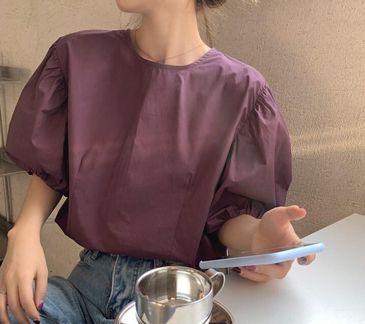 【送料無料】Tシャツ 半袖 カットソー パフスリーブ ボリューム袖 カジュアル きれいめ 大人 シンプル ホワイト ブルー パープル TP-158