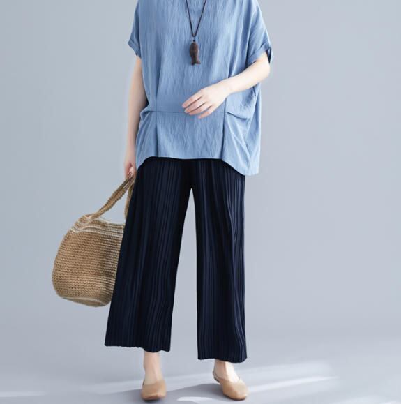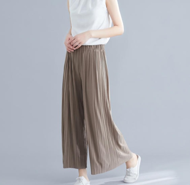 【送料無料】ワイドパンツ きれいめ リブ ハイウエスト 無地 大人 カジュアル シンプル 上品 30代 40代 ブラウン ネイビー PT-086