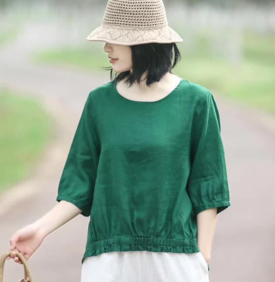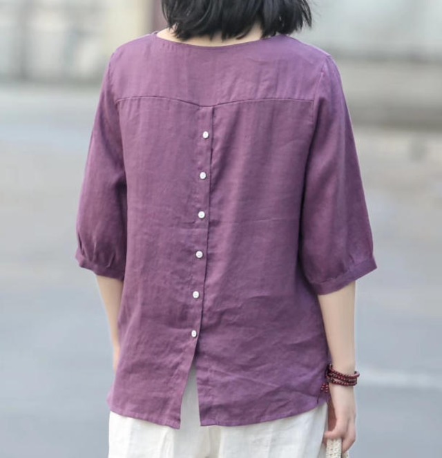 【送料無料】Tシャツ 半袖 カットソー リネン ゆったり カジュアル シンプル 大人 きれいめ グリーン ホワイト イエロー パープル ベージュ TP-170